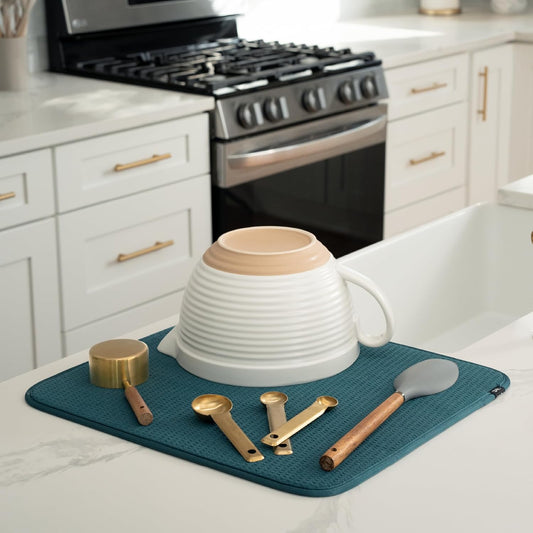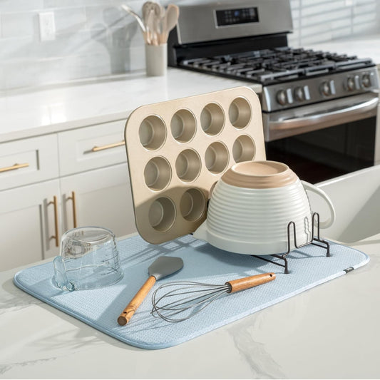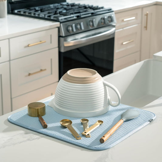 S&T INC. Dish Drying Mat XL, 18” x 24”, Absorbent Microfiber Kitchen Counter Mat, Dish Drying Pad for Dishes, Utensils, Pots and Pans, Extra Large, Sky Blue