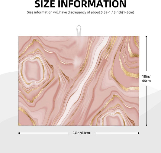 Pink Golden Marble Dish Drying Mat for Kitchen Counter Washable Absorbent Reversible Microfiber Rose Pink Modern Decorative Drying Pad Kitchen Accessories 16"x18"