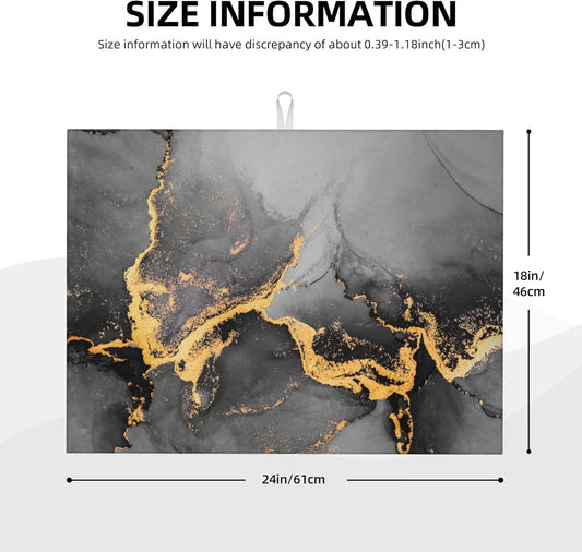 Black Gray Gold Marble Kitchen Drying Mat Abstract Modern Microfiber Dish Drainer Mat for Kitchen Counter Absorbent Reusable Washable 18x24 Inch