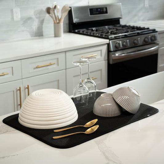 S&T INC. Dish Drying Mat XL, 18” x 24”, Absorbent Microfiber Kitchen Counter Mat, Dish Drying Pad for Dishes, Utensils, Pots and Pans, Extra Large, Black