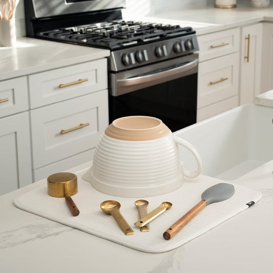 S&T INC. Dish Drying Mat Jumbo, 18” x 30”, Absorbent Microfiber Kitchen Counter Mat, Dish Drying Pad for Dishes, Utensils, Pots and Pans, Jumbo, Cream