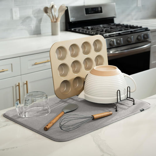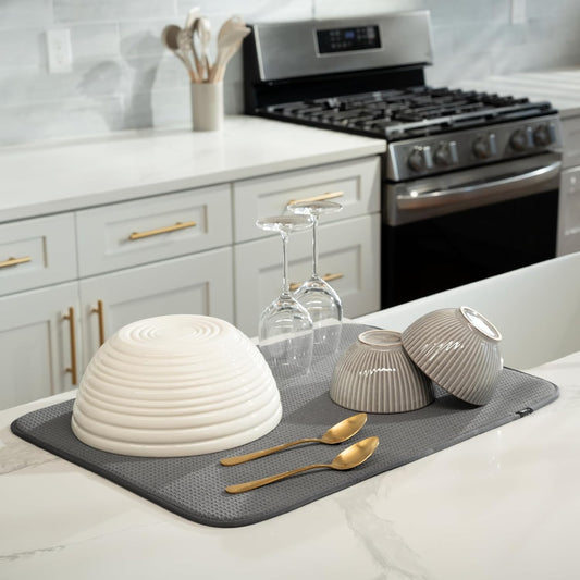 S&T INC. Dish Drying Mat XL, 18” x 24”, Absorbent Microfiber Kitchen Counter Mat, Dish Drying Pad for Dishes, Utensils, Pots and Pans, Extra Large, Grey Stone