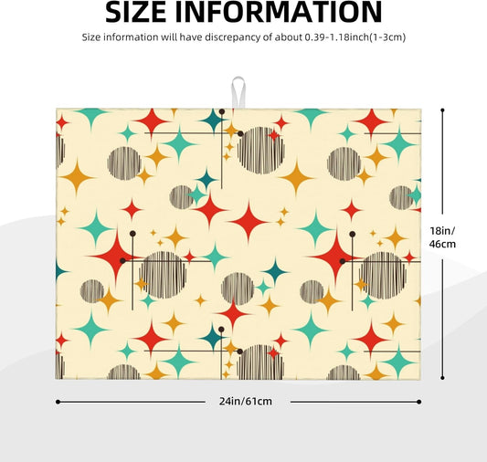 Mid Century Modern Retro Dish Drying Mat for Kitchen Counter Vintage Decorative Dish Drainer Rack Mats Washable Absorbent Reversible Microfiber Drying Pad Kitchen Accessories 18"x24"