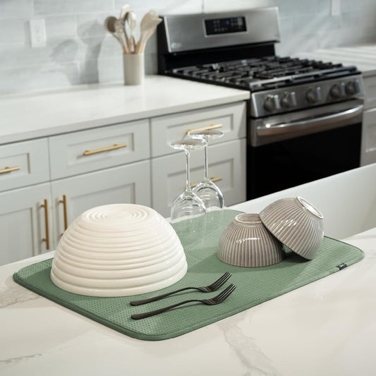 S&T INC. Dish Drying Mat XL, 18” x 24”, Absorbent Microfiber Kitchen Counter Mat, Dish Drying Pad for Dishes, Utensils, Pots and Pans, Extra Large, Sage Green