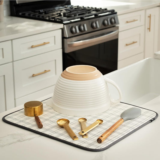 S&T INC. Dish Drying Mat XL, 18” x 24”, Absorbent Microfiber Kitchen Counter Mat, Dish Drying Pad for Dishes, Utensils, Pots and Pans, Extra Large, Stitched Plaid