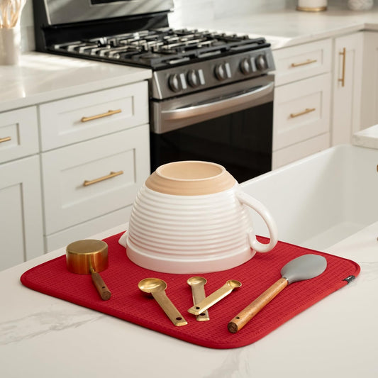 S&T INC. Dish Drying Mat XL, 18” x 24”, Absorbent Microfiber Kitchen Counter Mat, Dish Drying Pad for Dishes, Utensils, Pots and Pans, Extra Large, Red