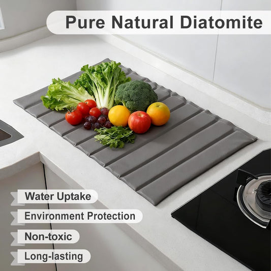 Stone Drying Mat for Kitchen Counter , Foldable 24"x16"Large Absorbent Diatomaceous Earth Dish Drying Mat, Quick Dry & Eco-Friendly for Dishes, Bottles, Cups Bathroom Any Countertop Non-Slip Mat