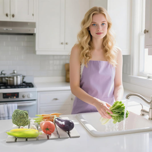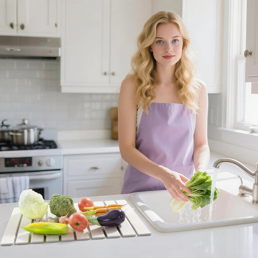 Foldable Stone Dish Drying Mat Fast Dry and Quickly Absorbed Collapsible Drying Mat, Protection Kitchen Counter,Kitchen Dishes Bottles Cups Match Any Countertop 23" x 16"