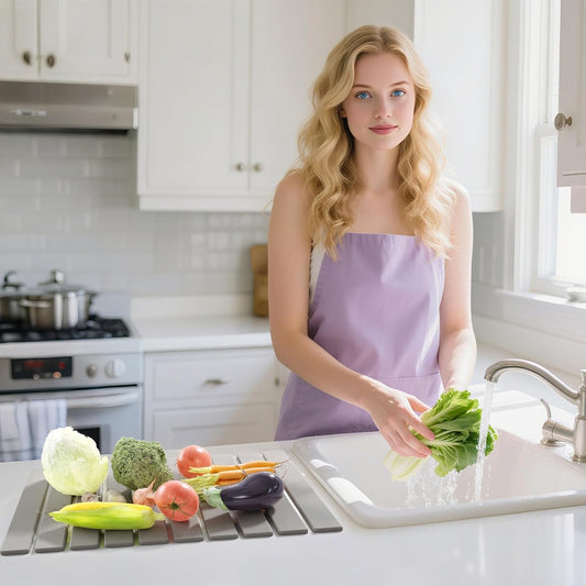Silicone Dish Drying Mat for Multiple Usage,Easy clean,Eco-friendly,Heat-resistant Silicone Mat for Kitchen Counter or Sink,Refrigerator or Drawer Liner Light Purple 2XL 24 inches x 18 inches