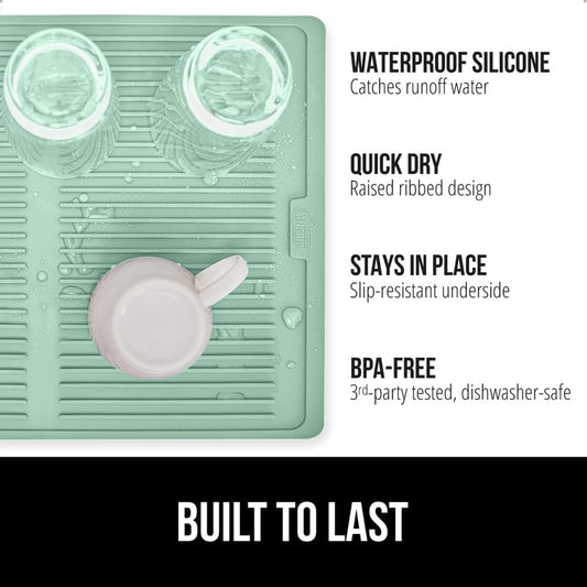 GORILLA GRIP 100% BPA-Free Patented Silicone Dish Drying Mat for Kitchen Counter, 18x16 Inch, Water Catching Ribbed Design, Easy Clean Waterproof Sink Liner, Heat Resistant, Fits Under Rack, Mint