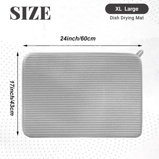 2 Pack Large Dish Drying Mat for Kitchen Counter,24*17 inch Microfiber Absorbent Dish Drainer,Large Size Dish Drying Pad for Countertops,Draining Racks,Sinks(Gray)