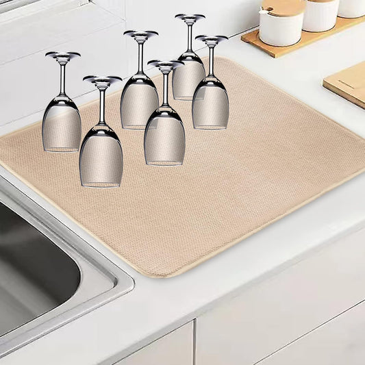 GORILLA GRIP Ultra Water Absorbent Microfiber Dish Drying Mat, 18x24, Quick Dry Thick Mesh, Slip Resistant Pad for Sink Dishes or Under Rack, Kitchen Counter Accessories, Machine Wash Mats, Almond