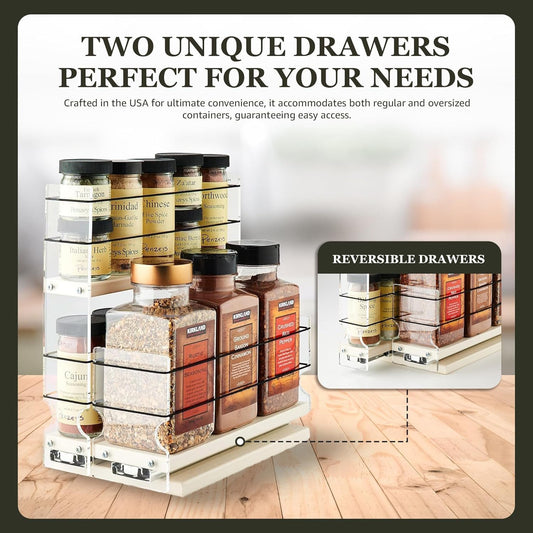Vertical Spice Combo Spice Rack Drawer - Pull Out Pantry Organizers and Storage - Kitchen Cabinet Organizer - Seasoning Sliding Caddy - Made in USA (5.75" W x 9.25" H x 10.60" D, Partially Assembled)
