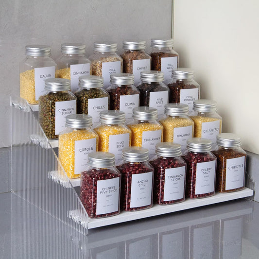 nianfeng Tiered Spice Rack, 5-Tier Spice Pantry Kitchen Cabinet Organizer, 19.9-Inch, Natural Wood Acrylic Stair Riser Stand, Countertop Seasoning Shelf