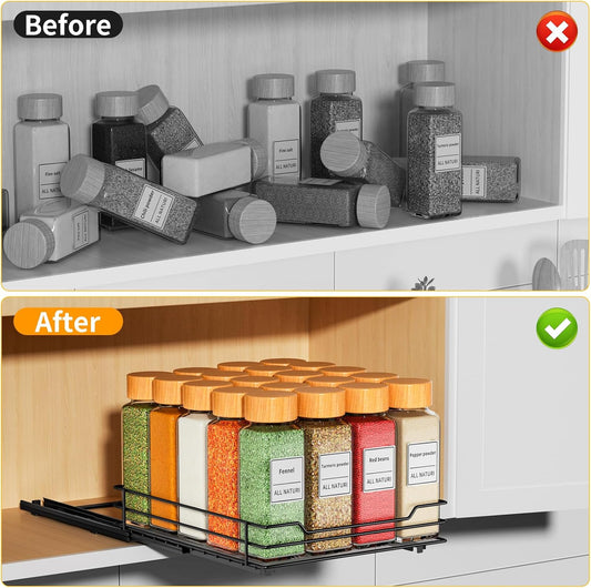 RCHYFEED Pull Out Spice Rack Organizer for Cabinet,Slide out Spice Organization for Inside Cabinets,Heavy Duty Seasoning Organizer Fits Kitchen and Pantry,Sauces,Canned (12.5''Wx10.5''Dx2.5''H)