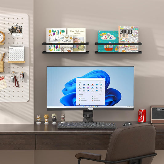 PUSDON Hanging Storage Baskets Organizer Wall Mount, Metal Wire Storage Bin Rack for Kitchen Bathroom Shower Spice Shelf Home Decor Essentials Black-2 Packs(Guardrail)