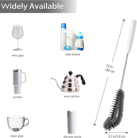 2-Pack 16 inches Long Handle Bottle Cleaning Brushes - Ideal for Coffee Glasses, Pots, Milk Cups, Mugs, Wine Bottles, and Baby Bottles (Black)