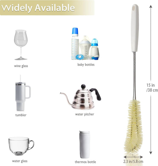 2-Pack 16 inches Long Handle Bottle Cleaning Brushes - Ideal for Coffee Glasses, Pots, Milk Cups, Mugs, Wine Bottles, and Baby Bottles (Beige)