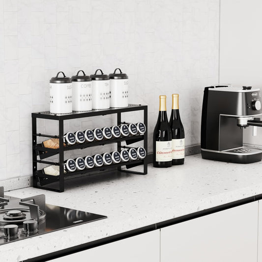 Spice Rack for Countertop, 2-Tier Standing Sturdy Metal Seasoning Organizer Holder, Space Saving Spice Shlef for Kitchen, Cabinet, Pantry Storage, Easy Assembly, Black