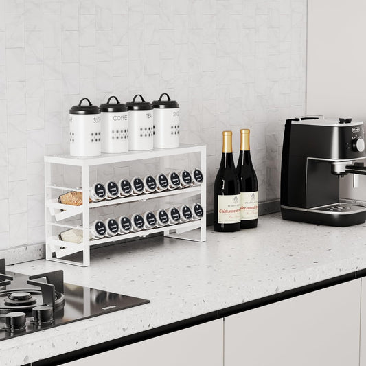 Expandable, Stackable, Adjustable Spice Rack kitchen Organizer,Metal Pantry Storage Shelves - Multi-Tier Shelf for Cabinet, Countertop, Pantries, Cupboard or Wall Mount,White