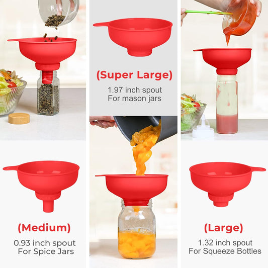 Wide Mouth Kitchen Funnel, Food Grade Plastic Cooking Canning Funnel with 4 Sizes Spouts for Filling Wide and Regular Mason Jars, Spray Dropper Oil Bottle Jug Spices Shampoo Sauce