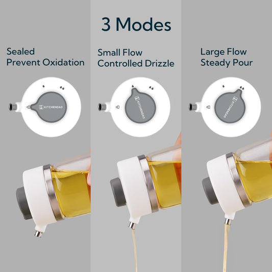 KITCHENDAO Precision Pour Glass Oil Dispenser with 3 Modes, Drip-free Spout, Two Adjustable Flowing Speed, 12 oz Vinegar Dispenser Bottle for Kitchen, Borosilicate Glass Olive Oil Bottle for Cooking
