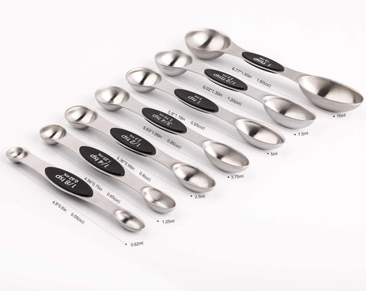 Magnetic Measuring Spoons Set of 8 Stainless Steel Stackable Dual Sided Nesting Teaspoons and Tablespoons for Measuring Dry and Liquid Ingredients