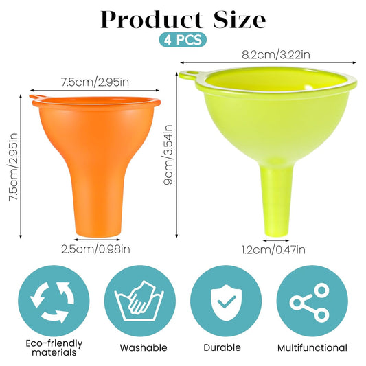 4 Pack Kitchen Silicone Funnel, 4 Colors Kitchen Funnel Set Wide Mouth Funnels for Filling Bottles Small Canning Funnels for Daily Cooking and Water Liquid Oil or Powder Transfer