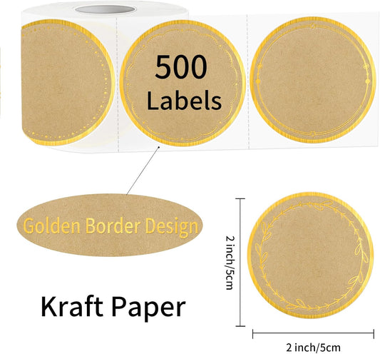2" Kraft Label Stickers for Jars and Lids, 6 Different Gold Border Designs, Kraft Sticker Labels use for Pantry, Mason Jars, Canning, Bottles- 500pcs