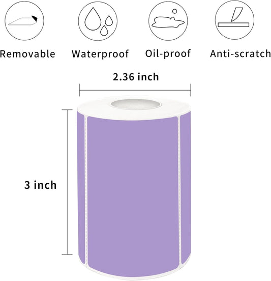 2×3 Inch Purple Removable Thermal Labels,Self-Adhesive Square Direct Thermal Labels,300 Sheets per Roll with Perforated Lines