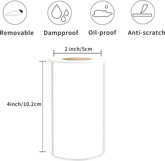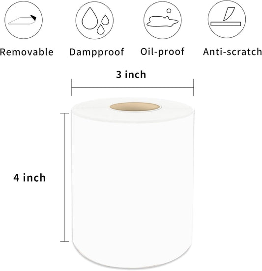 2×4 Inch White Removable Thermal Labels,Waterproof Thermal Label (250 Sheets per Roll,2 Rolls)