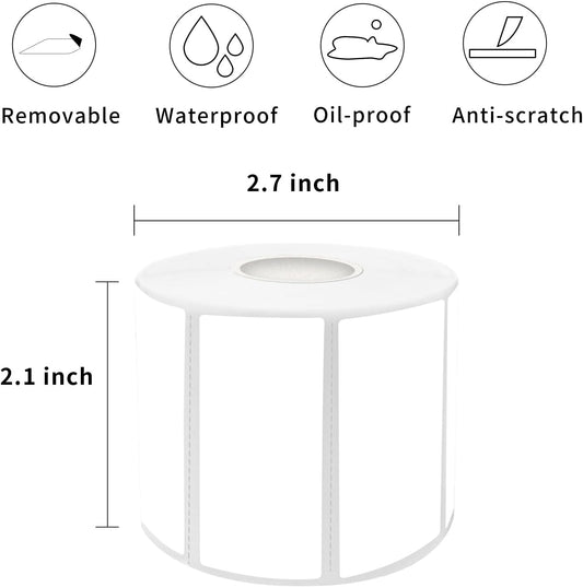 2×3 Inch White Removable Thermal Labels,Waterproof Thermal Label (300 Sheets per Roll,2 Rolls)