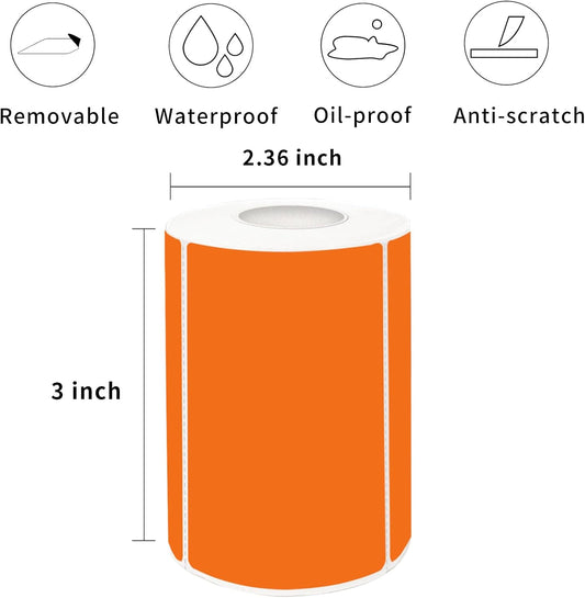 2×3 Inch Orange Removable Thermal Labels,Writeable,Removable,Thermally Printable,300 Sheets per Roll with Perforated Lines