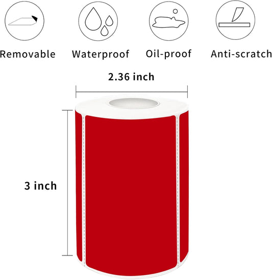 2×3 Inch Red Removable Thermal Labels,Self-Adhesive Square Direct Thermal Labels,300 Sheets per Roll with Perforated Lines