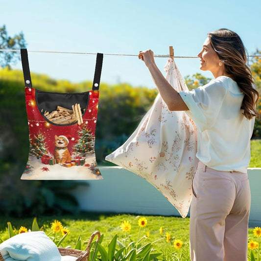 2025 Christmas Cat Waterproof Clothespin Bag with Hanging Rope - 14.5x12 Inch Storage Organizer for Home, Backyard & Camping