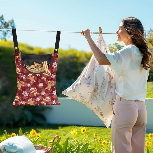 Christmas Gingerbread Man Waterproof Clothespin Organizer - Hanging Hook & Large Opening for Beach House, Laundry Room Decor