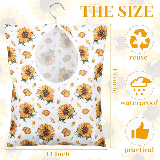 2 Pcs Sunflowers Print Clothespin Bag, Laundry Hanging Bag Fits Clothes Lines, Pin Bag with Hanging Rope for Home Outdoor for Hanging Clothes Outside Balcony Bathroom Corridor Yard