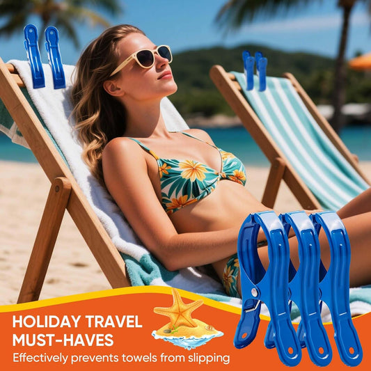 Beach Towel Clip, 4 PCS Large Cloth Pins, Quilt Drying Clip, Plastic Clothespins, Strong Grip Holder to Dry Laundry on Clothesline and Hanging Rack