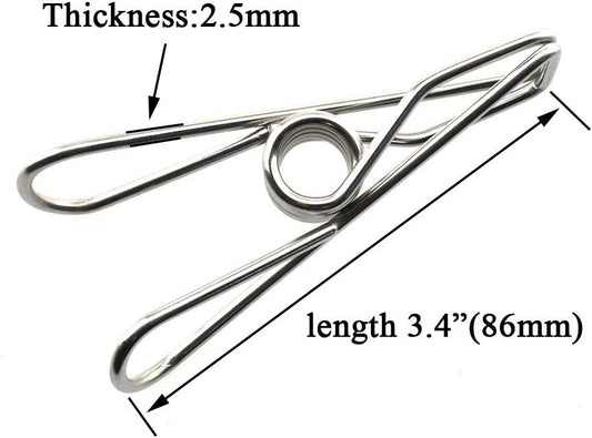 HAHIYO Clothespins Chip Clips All Metal Stainless Steel No Rust Stains Strong Grip in Heavy Wind 3.4 Inches 14 Pack Extra Large Do Not Fall Apart Open Wide for Holding Clothes Snack Bag Clamps