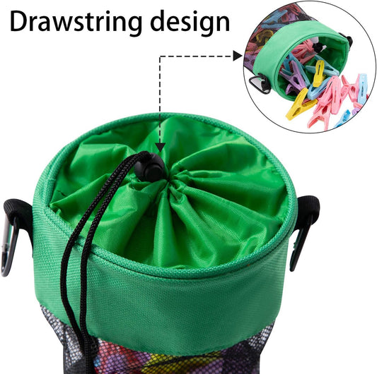 Mesh Clothespin Bag with Hooks Hanging Clothes Pin Bag with Drawstring Closure Clothespin Holder, Ventilation and Moisture Resistance, Storage Organizer, Machine Washable (Green)