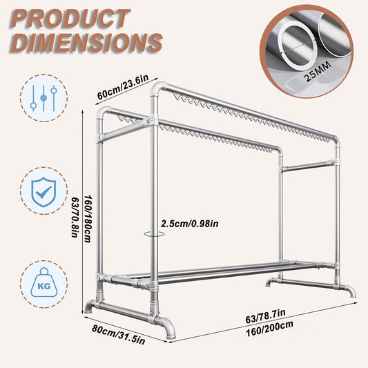 Clothes Drying Rack with Windproof Hooks, 78.7 inch Adjustable Heavy Duty Laundry Drying Rack, Free Standing Metal Clothes Rack, for Indoor Outdoor