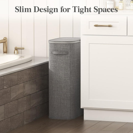 Lifewit 65L Slim Laundry Basket with Lid, Narrow Large Laundry Hamper with Plastic Handles and Removable Bag, Tall Foldable Dirty Clothes Hampers for Laundry Room, Bedroom, Bathroom, Dorm, Gray