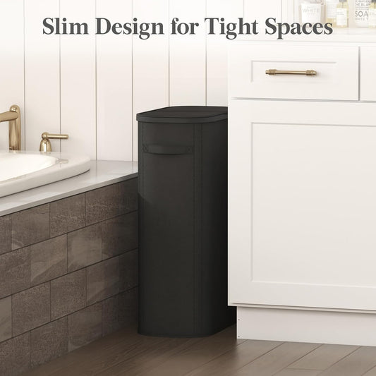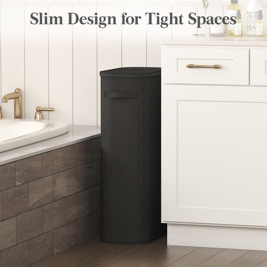 Lifewit 65L Slim Laundry Basket with Lid, Narrow Large Laundry Hamper with Plastic Handles and Removable Bag, Tall Foldable Dirty Clothes Hampers for Laundry Room, Bedroom, Bathroom, Dorm, Black
