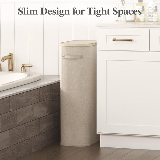 Lifewit 75L Slim Laundry Basket with Lid, Narrow Large Laundry Hamper with Plastic Handles and Removable Bag, Tall Foldable Dirty Clothes Hampers for Laundry Room, Bedroom, Bathroom, Dorm, Beige