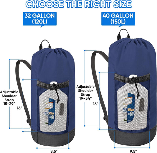 BALEINE 150L Laundry Bag Backpack, 900D Oxford Fabric Large Travel Laundry Bags with Shoulder Straps and 2 Mesh Pockets for College Dorm, Apartment, Laundromat (Navy, 150L)