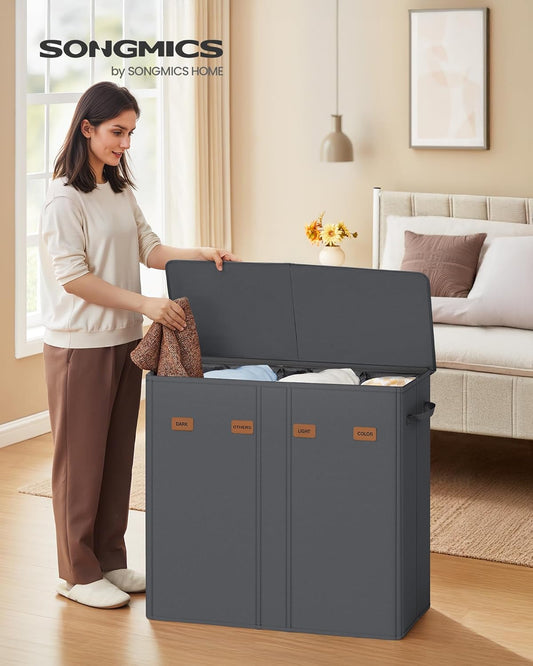 SONGMICS 55.4 Gallon (210 L) Laundry Hamper, 4-Compartment Laundry Basket Sorter with Lid, Labels, Removable Liner Bags, for Bedroom, Dark Gray URLH014G01