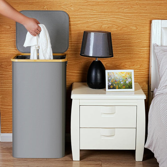 efluky Laundry Basket with Lid and Removable Bag, 100L Tall Laundry Hamper with Bamboo Handles, Aesthetic Dirty Clothes Bin for Laundry Room, Bathroom, Bedroom and Dorm, Silver Grey