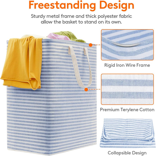 Lifewit Laundry Hamper Large Collapsible Laundry Basket, Freestanding Waterproof Clothes Hamper Storage with Easy Carry Handles for Clothes in Bedroom Bathroom College Dorm for Adults, Blue, 100L