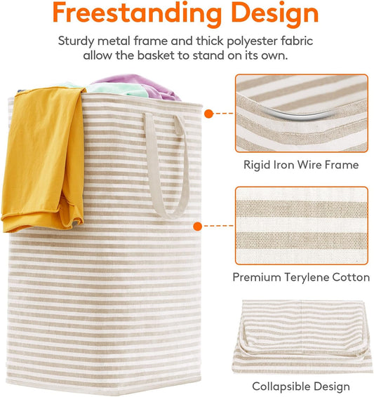 Lifewit Laundry Hamper Large Collapsible Laundry Basket, Freestanding Waterproof Clothes Hamper Storage with Easy Carry Handles for Clothes in Bedroom Bathroom College Dorm for Adults,Beige, 80L