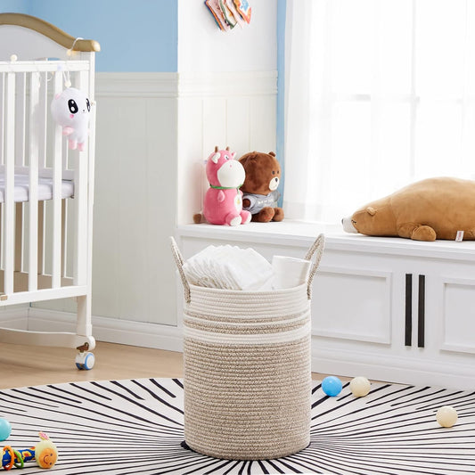 VIPOSCO Tall Laundry Hamper, Woven Rope Storage Basket for Blanket, Toys, Dirty Clothes in Living Room, Bathroom, Bedroom - 30L Brown & White
